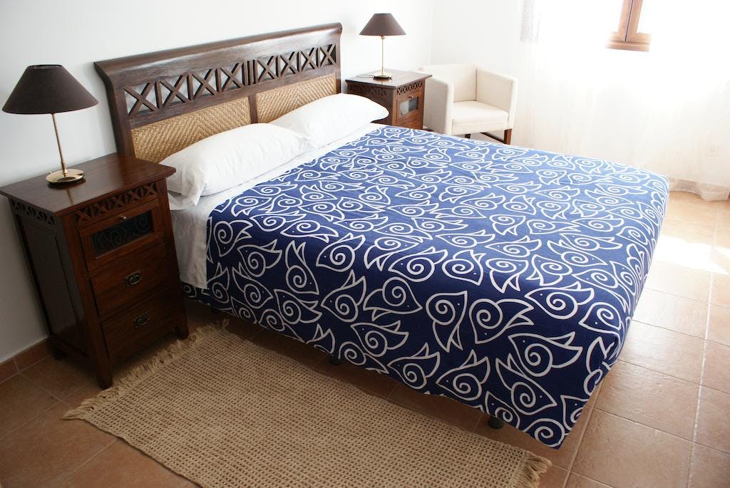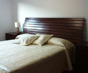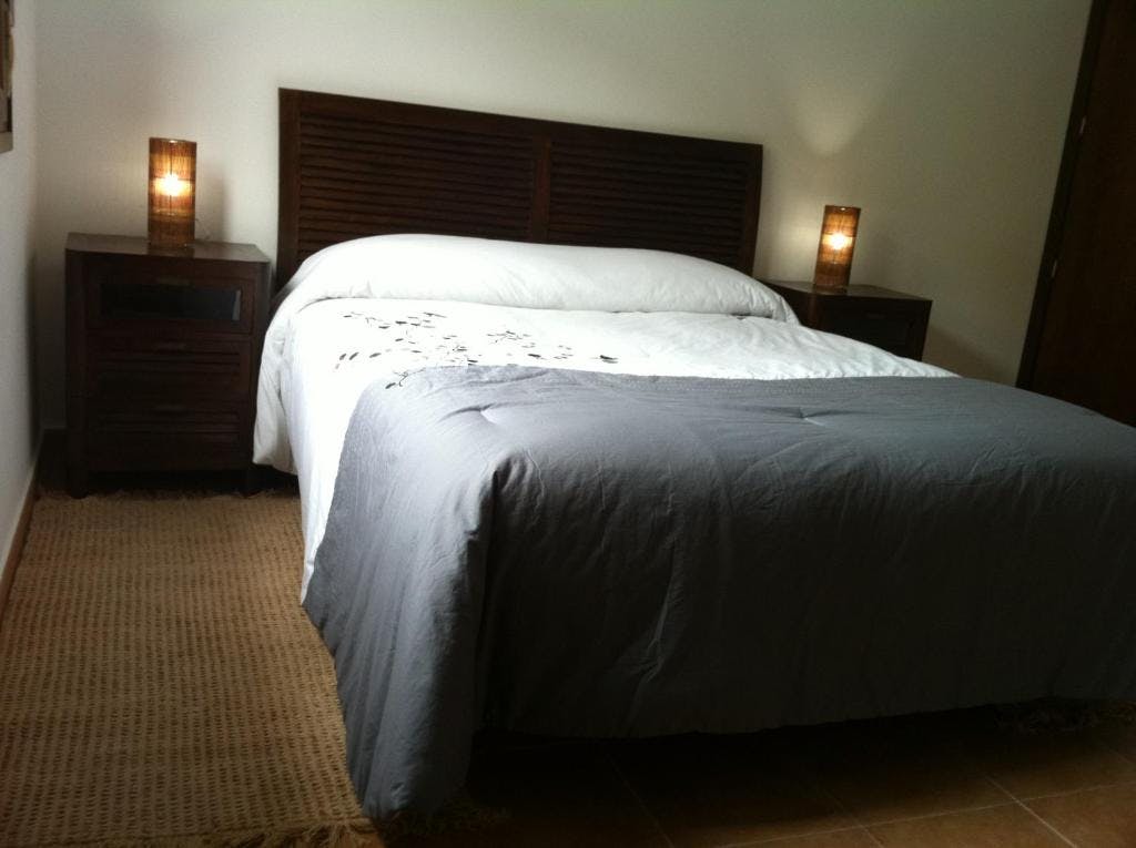 Apartamento de una habitación con cama doble, salón, cocina y terraza privada.